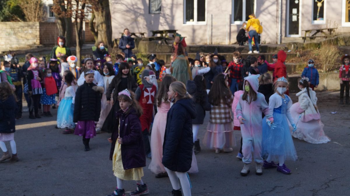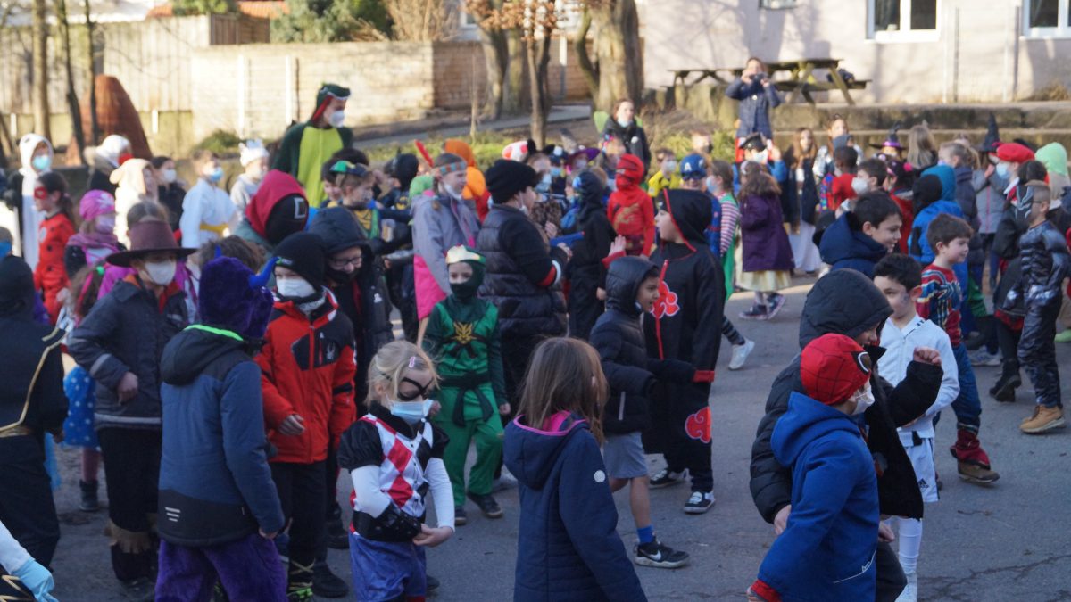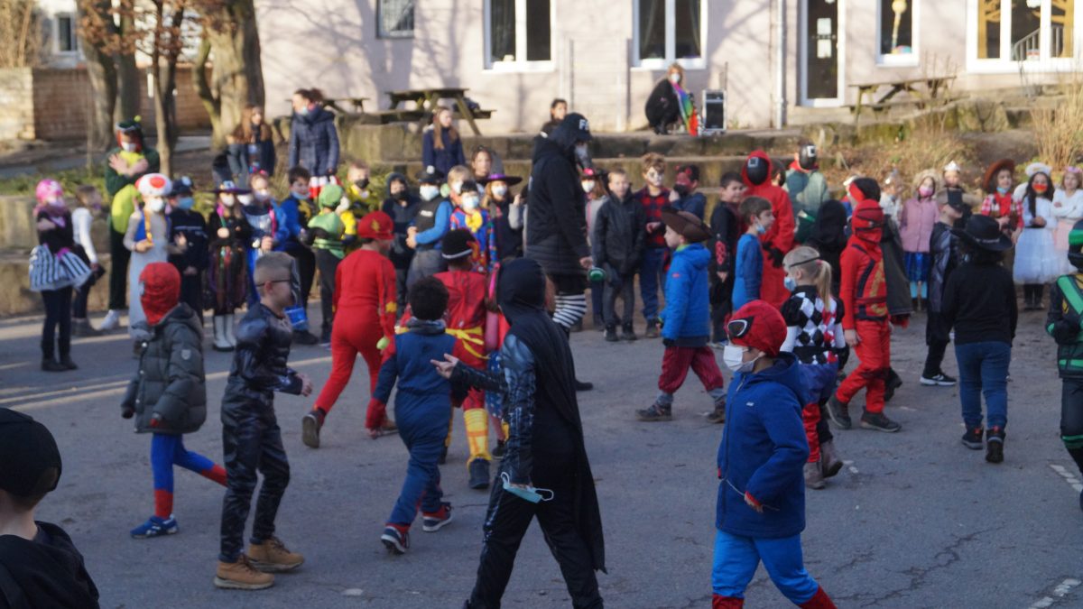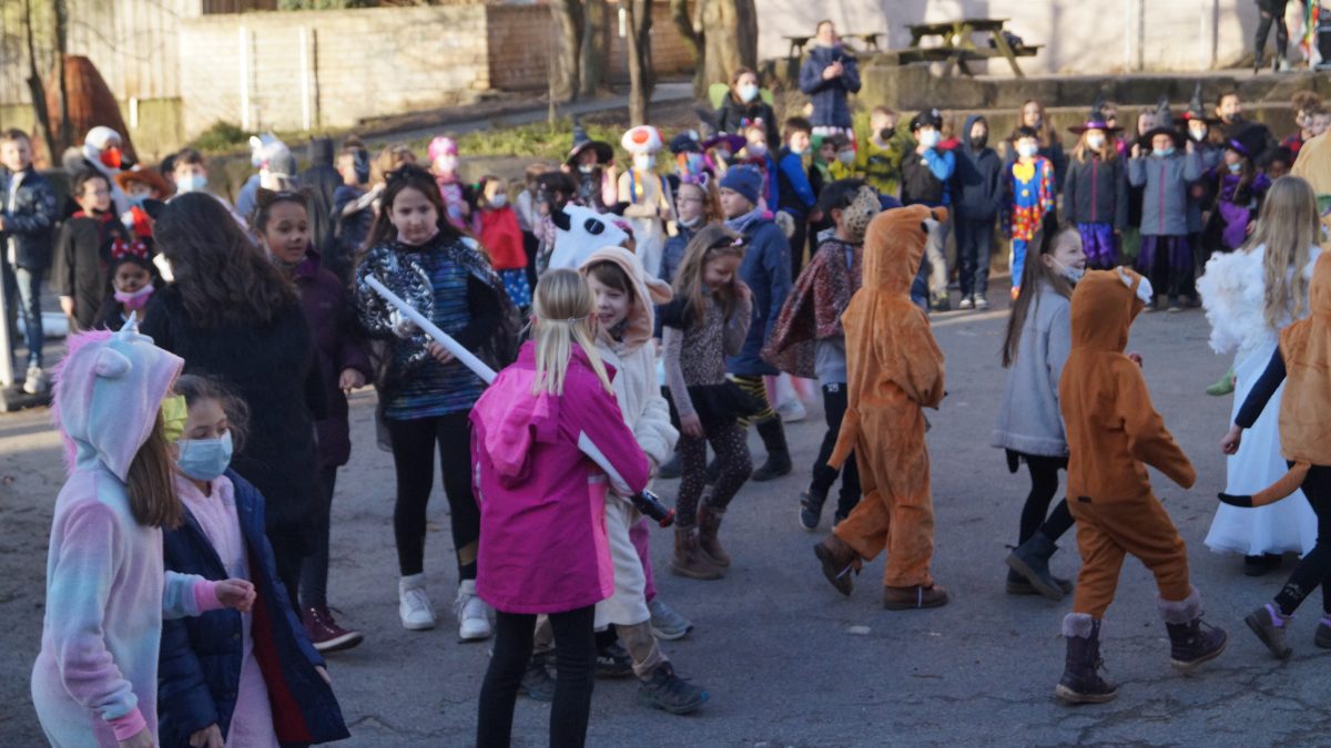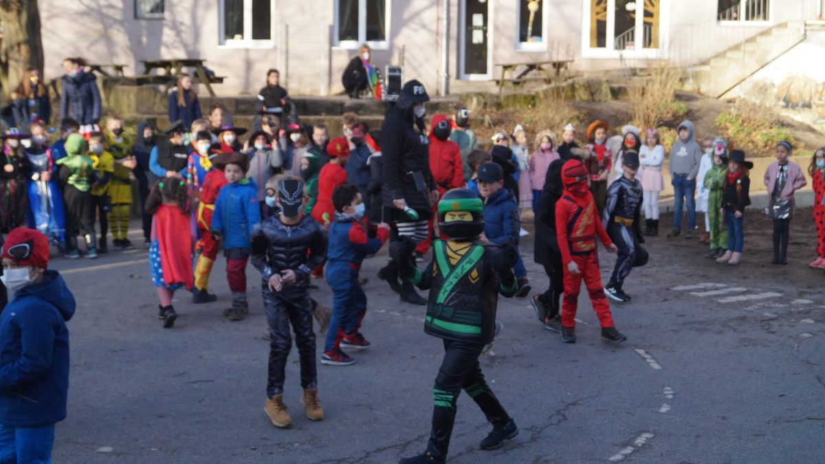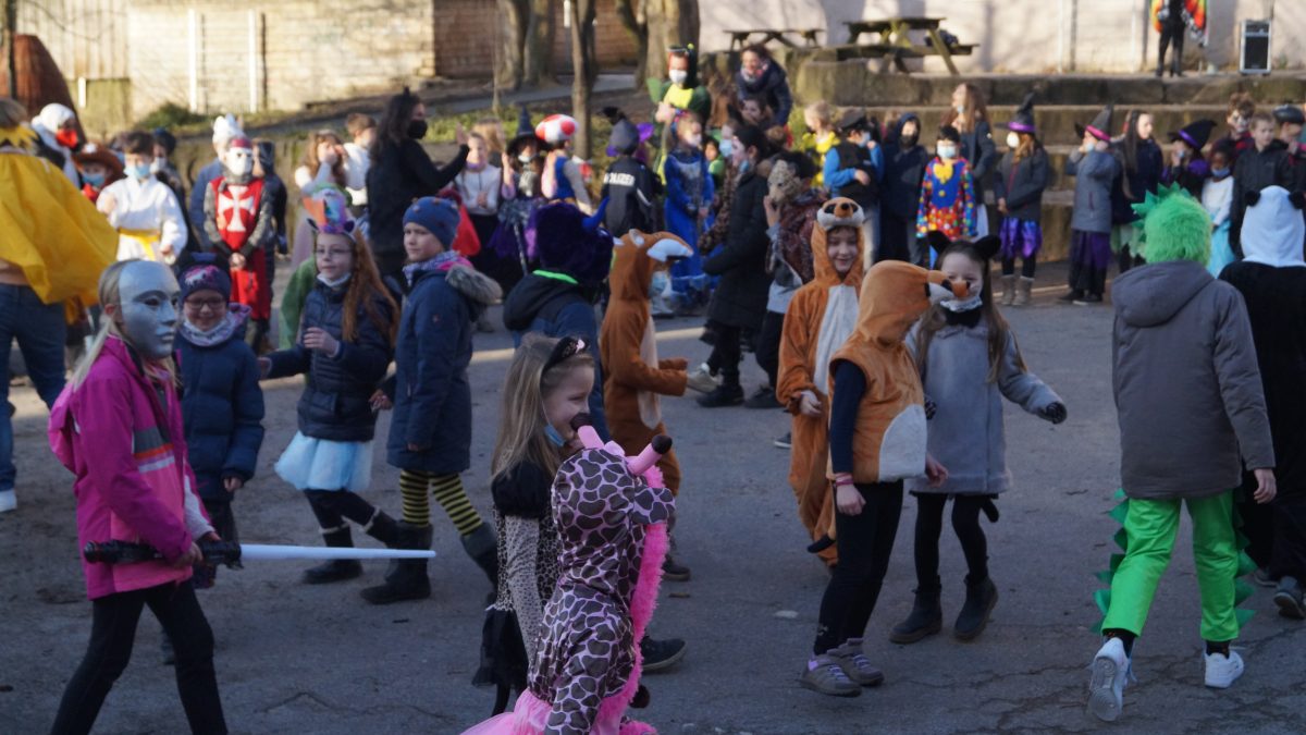 Als Einstieg traf sich die gesamte Schulgemeinschaft auf dem Schulhof – die Baken wurden an die Seite geschoben und dann wurden die tollen Kostüme aller Schüler*innen bestaunt! Zu thematisch passender Musik tanzten die Kinder durch die Mitte und winkten wie die Karnevals-Profis allen Zuschauer*innen zu. Lediglich die „Kamelle“ fehlten 😀🍬🍬🍬